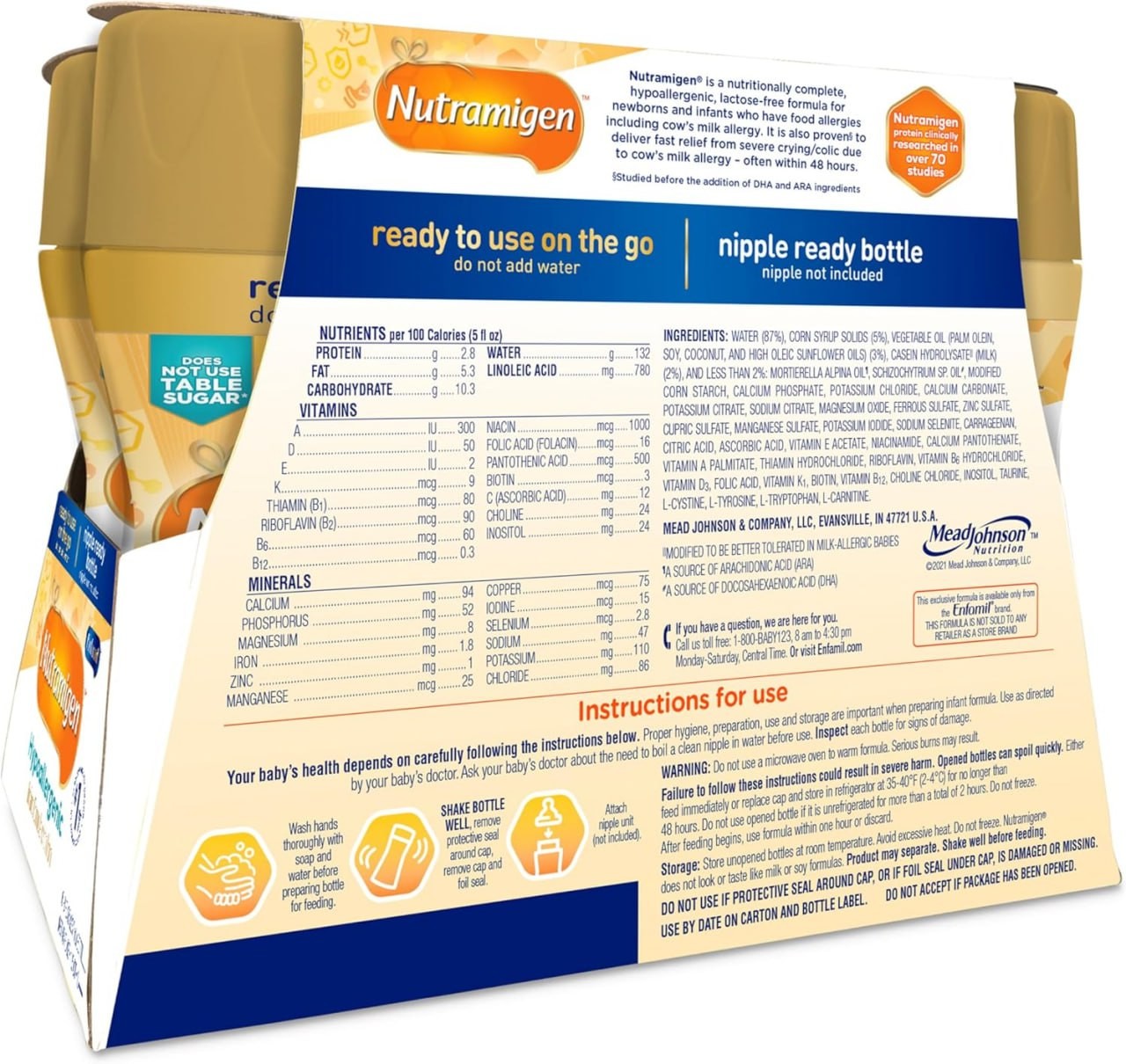 Enfamil Nutramigen Hypoallergenic Baby Formula with Iron, Lactose Free, Colic Relief from Cow's Milk Allergy Starts in 24 Hours, Brain Building DHA, Concentrated Liquid, 8 Fl Oz, 24 Bottles